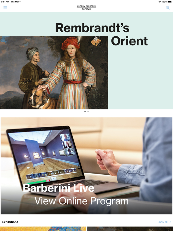To use the Barberini App, make sure you have an internet connection. Free WiFi is available in the Museum Barberini. We recommend activating Location Services and Bluetooth to discover all the information and features of the app.