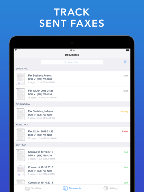 Fax App lets you turn your iPhone or iPad into a powerful fax machine! Scan any document with advanced integrated document scanner app and fax them anywhere in the world in just a few taps! You can scan and fax contracts, receipts, any kinds of documents, paper notes, schedules, timetables – anything you might need in your day to day life using this efax app.