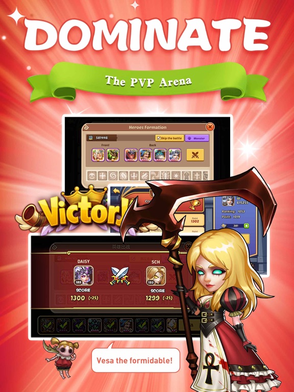 "The unique IDLE RPG on App Store. Form your heroes and battle for victory!!!!”