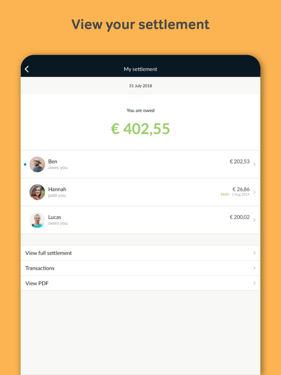 • Settle the list and see immediately who gets money back and who still needs to pay