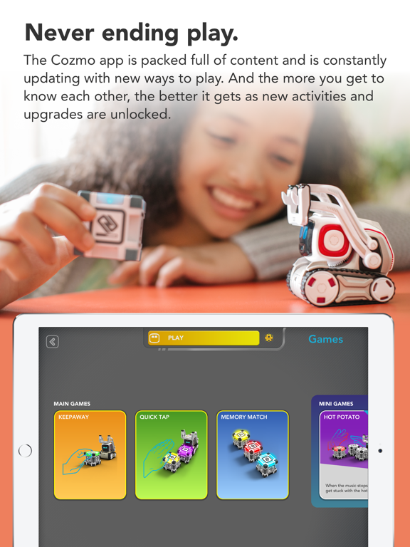 You see, Cozmo is a real-life robot like you've only seen in movies, with a one-of-a-kind personality that evolves the more you hang out. He'll nudge you to play and keep you constantly surprised. More than a companion, Cozmo’s a collaborator. He’s your accomplice in a crazy amount of fun.