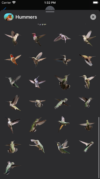 68 Hummingbirds - 12 Animated Hummingbirds, 56 Hummingbird static Stickers for iMessage. Also a sample Hummingbird Flower.