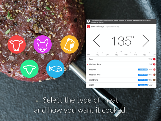 The MEATER® app, together with the MEATER® meat thermometer (sold separately at https://meater.com/shop) will change the way you cook your meals, and make it a new and exciting experience. Using patented software algorithms, the MEATER® app will give you cook time estimates, and guide you towards the juiciest steak, chicken, turkey, fish or other cut of meat that you've ever cooked.