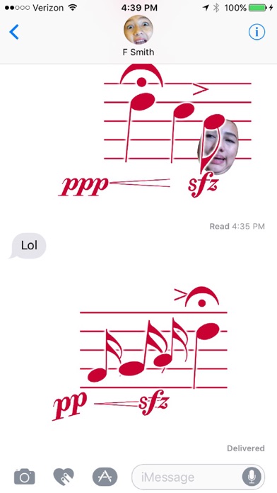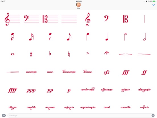 Adorn your photos and videos with musical notation, expression markings, symbols, dynamics, clefs, and notes—right in iMessage.