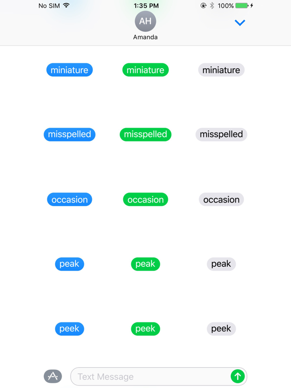 We've got the most commonly misspelled and autocorrected words people use in text, and have created some very clever bubbles to help smooth out any miscommunications by erasing the content in the first place, for both sent and received text bubbles. No more screen capped embarrassing text messages.