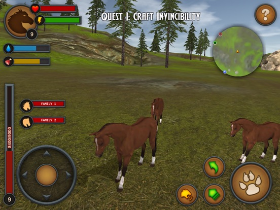 The story begins with your young filly.  You must help her find the way in this new world.  Locate your family members, mark your territory, and avoid the wild enemies.  This is the land of wizards, magic and adventure. Your horse will build her skill by successfully completing quests. Along the way, you will develop your hunting skills. You will need to drink water and stay hydrated. Be sure to hunt and eat when your hunger level gets low.