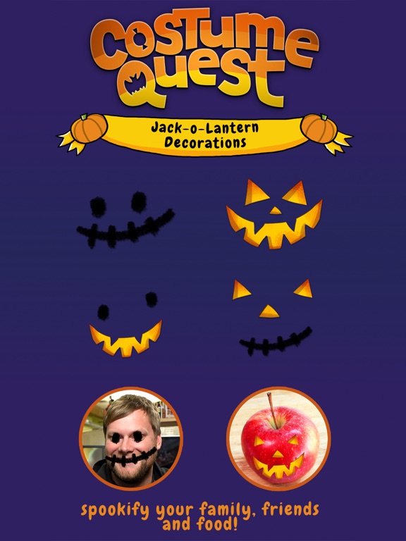 34 Costume Quest and Halloween themed stickers, featuring Wren, Reynold and other characters from the game, a selection of spooktacular pumpkins, and pumpkin decoration pieces so you can custom carve spooky faces into your own photos!