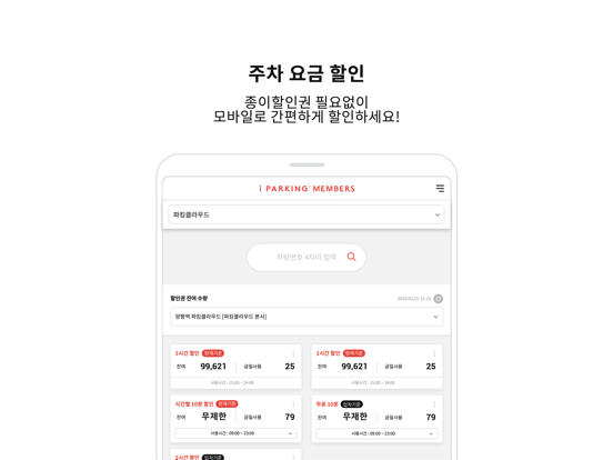 매장을 방문해주신 고객분들의 주차 요금을 iParking Members 어플을 통해 간편하게 요금 할인 처리를 할 수 있습니다.