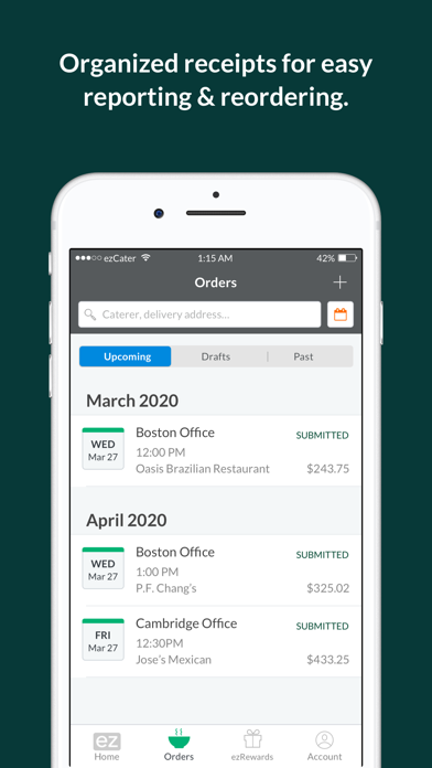 ezCater helps busy people find and order great food for their meetings and events, right from their mobile device.