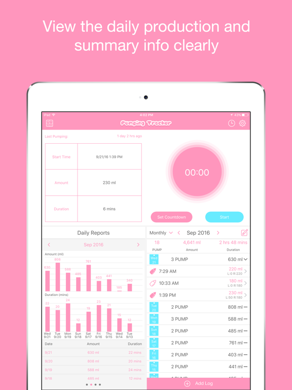 It’s easy and effective to help you stress relief on ‘When did I pump last time?’, ‘When should I pump next time?’, ‘How much did I produce recent days?’ and ‘When can I stop pumping?’ these staffs.