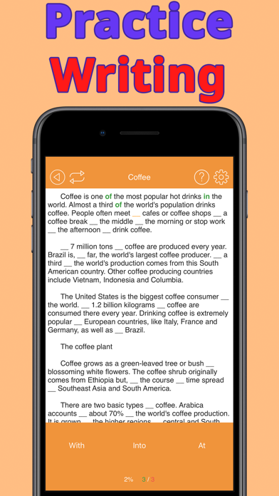 In our application, you can learn prepositions based on passages from real articles and passages from books. You choose from the option that you like and proceed to the assignments.