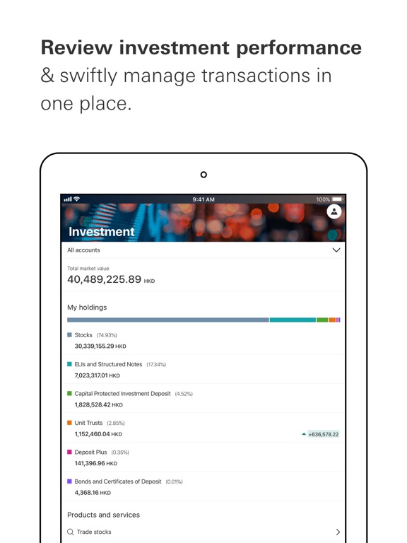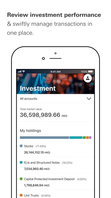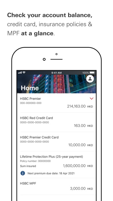 • Check your account balance, credit card balance, insurance policies and MPF at a glance;