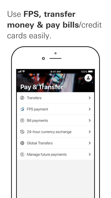 • Stay informed with push notifications for eStatements and eAdvices, incoming FPS funds and credit card payment reminders etc.