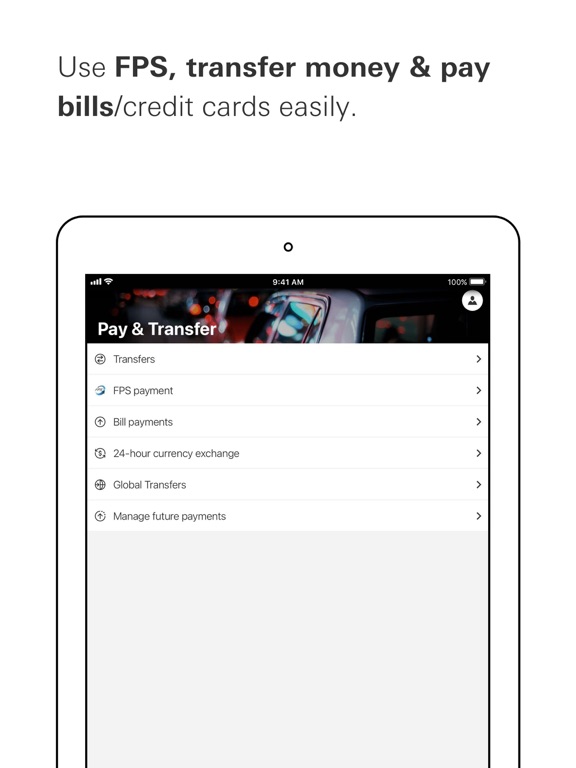 • New customers can open a bank account on our app without visiting a branch (For Hong Kong customers only);