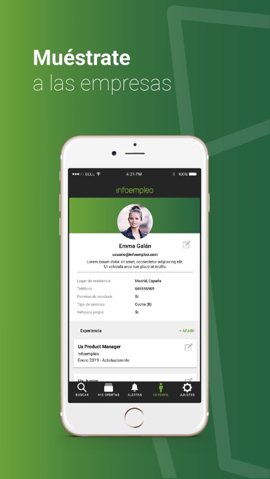 En tu CV podrás editar todos tus datos personales, experiencia, formación y foto. Recuerda que los currículums completos y actualizados consiguen mejores resultados.