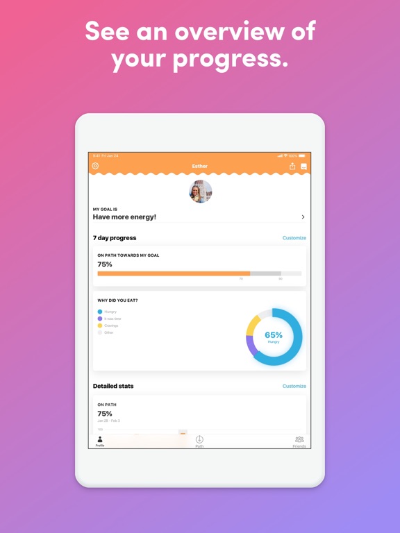 - Easily reflect on and log why you ate.