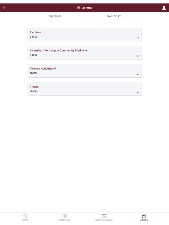 - visualizzazione del proprio libretto universitario: consultazione degli esami superati e di quelli sul proprio piano di studi, della propria media ed dei CFU conseguiti