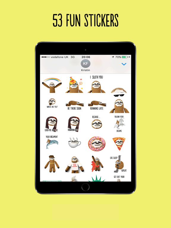 4. Now you will see the sloth stickers that you can send in your messages! Enjoy!