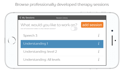 Cuespeak is optimised for use with a Speech & Language Therapist, but can also be used independently. The app can be managed remotely from another location, with the clinician or other helper sending session updates via the internet, and the user sending back results.