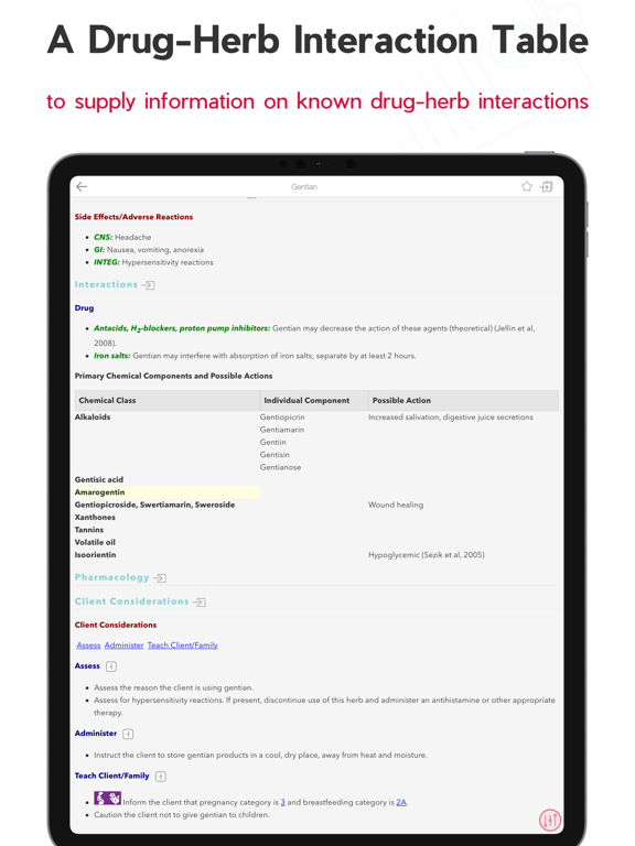 - Popular Herb, Pregnancy, and Pediatric icons help you find relevant content quickly for common herbs and herbs for special populations