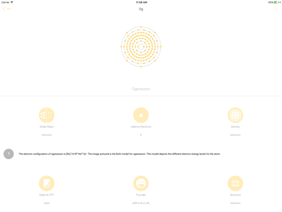 Periodic Table: CHEMISTRY is designed with students, teachers, and researchers in mind. It is fully rotatable, and includes Bohr models and lots of information for every single element.