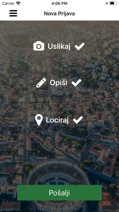 Aplikacija omogućuje građanima da šalju gradskim institucijama anonimnu prijavu određene problematike ili prijedloge.