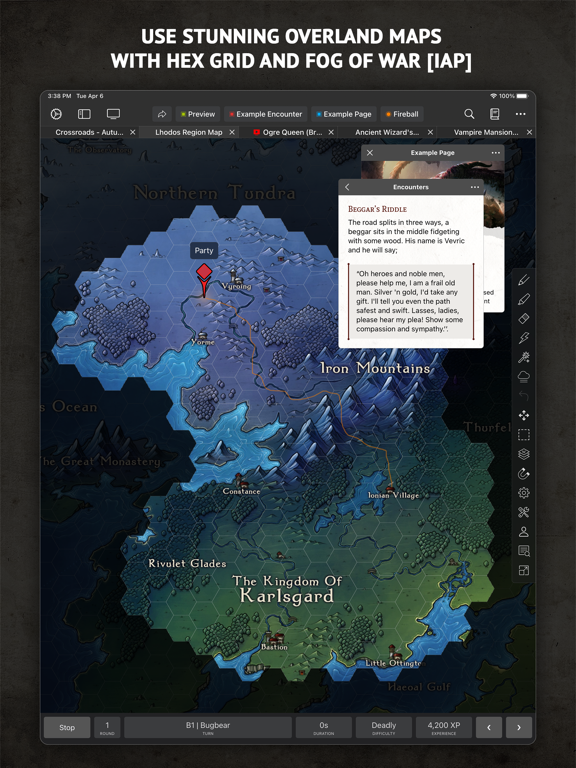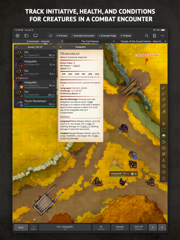 EncounterPlus VTT is a powerful virtual tabletop app designed to help Dungeon Masters to run D&D 5E combat encounters more easily. You can track initiative, health, and conditions for various monsters and players and position them as tokens on the map.