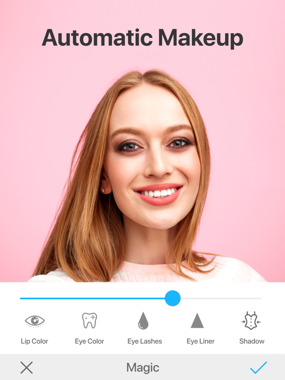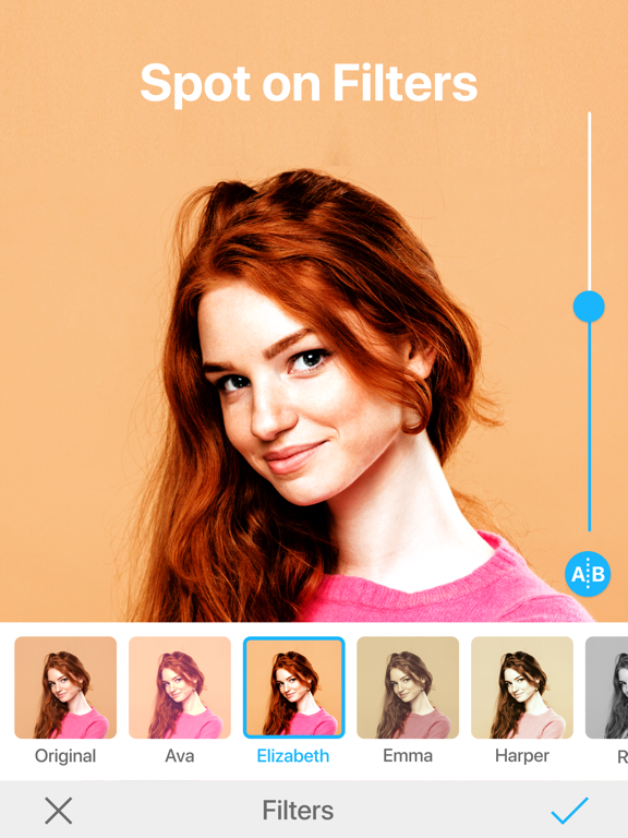* Smooth, edit a to achieve perfect skin for perfect selfies and photos! For an added bonus, swipe on a cool blush or rouge to give your cheeks an extra glow.