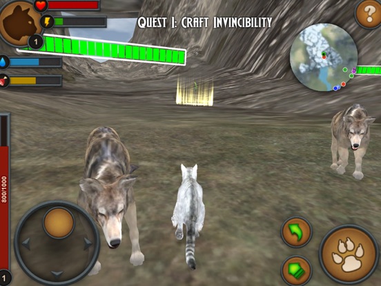 The story begins with a young cat.   Play with some family members, find some food, drink some water, mark some territory, and avoid the enemies.  This is the Arctic land of magic and adventure. Your Wolf will build her skill by completing various quests. Along the way, you will develop your hunting skills. You will need to drink water and stay hydrated. Be sure to hunt and eat when your hunger level gets low.