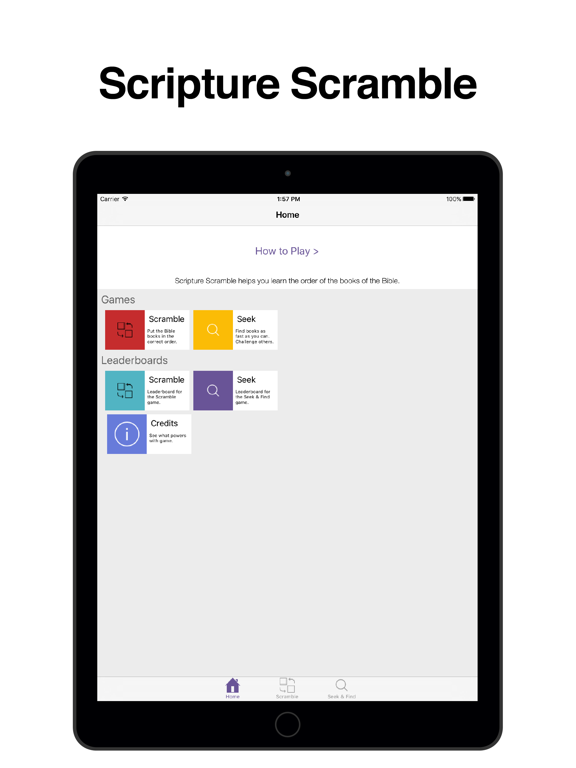 Scripture Scramble is comprised of two games to help you learn the order of the books of the Bible, according to the New World Translation (JW Library app) published by the Watchtower Bible and Tract Society. Use these games to improve your digital "muscle memory" to quickly find referenced scriptures in the JW Library App during Public Talks and other meeting parts. Multiplayer mode is a fun way for children to learn the order of the Bible books during family worship.