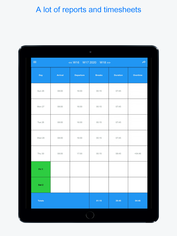 Easily track and calculate your working hours, plannings and agendas, count overtime and extra hours with work time tracker and management software iziTime / Planningify Planning worklog). Print your PDF timesheets and time tables, export per e-mail, iCloud, Google Drive, or any spreadsheet like Excel, Numbers or Google Sheets.