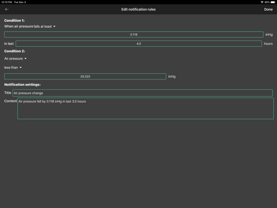 * Notification about pressure change. Useful when you are in weather sensitive zone like desert, mountain, sea.