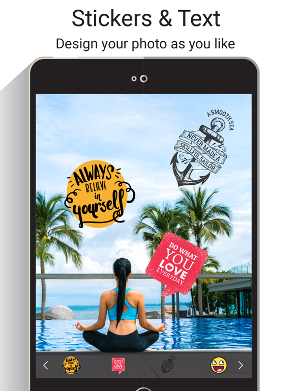 - Add text with lots of colors & fonts on your photo.