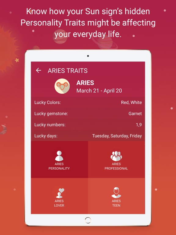 • 4 different types of traits for all sun signs along with Lucky numbers, colors and