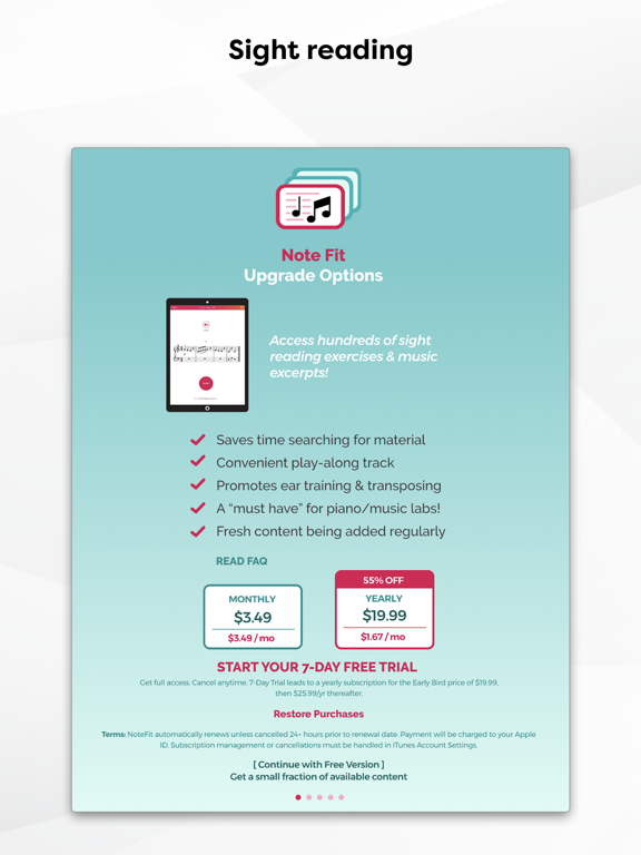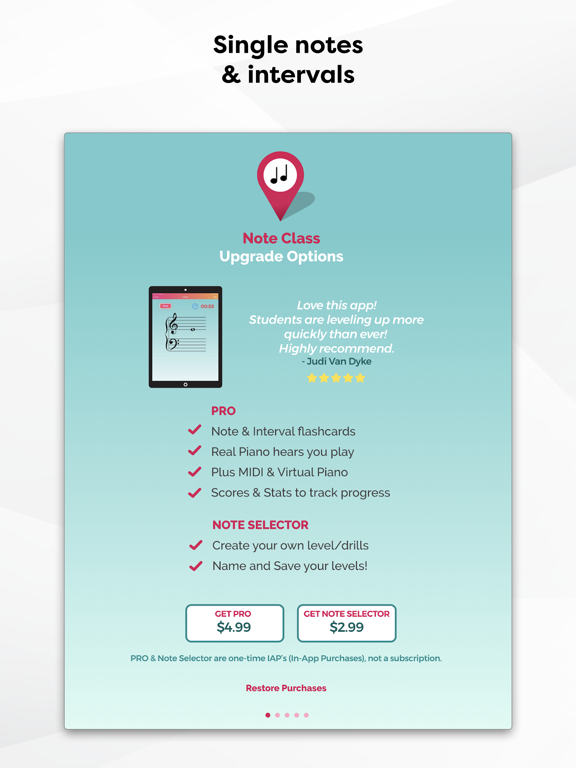 Note Quest is like 2 apps in 1! It comes with 2 main sections: Note Class and new Note Fit for sight reading. Choose the one you need, or choose both!