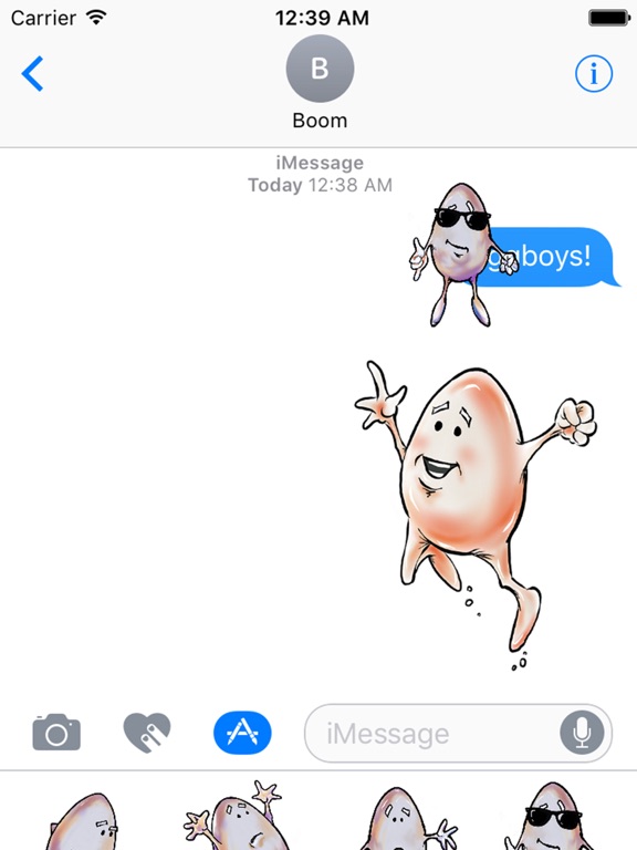 The Egg-Boy Sticker Pack brings you a peek into The Risky Adventures of Egg-Boy — a creation from the mind and hands of Matt “Boom” Daniel, a US Marine fighter pilot veteran. Egg-Boy is a happy, little, raw, unfertilized ovum that enjoys the normal things in life, but often finds himself in situations of peril. In this sticker pack, Boom captures Egg-Boy and his emotions, allowing you and your friends to bring some over-easy excitement and scramble up some fun for your messaging.
