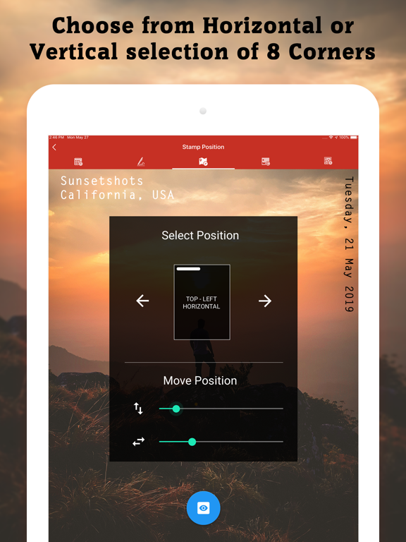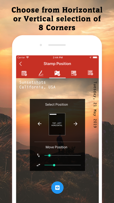 Date and Time stamper will automatically add current timestamp on your photos when required. Auto date time stamp camera app perfectly works as Timestamp Camera marking up everything you snap. You can also add custom Date stamp!