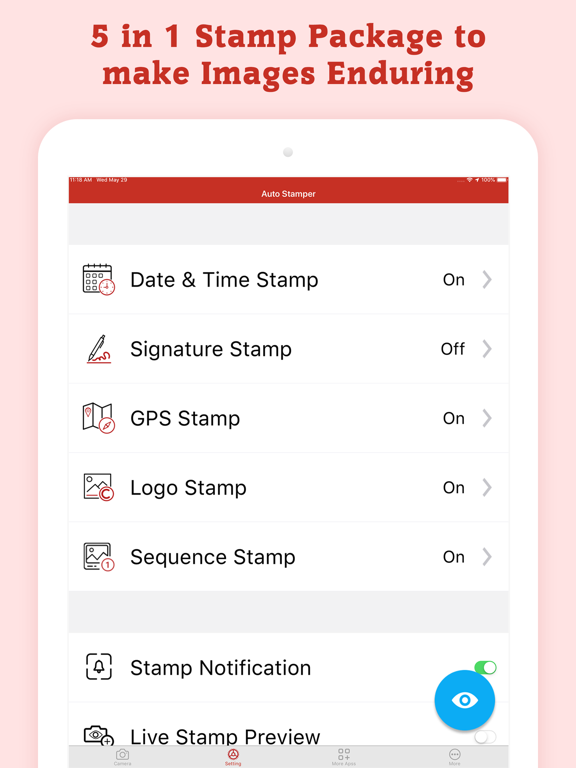 - Simple designed user interface with manual “ON/OFF” functionality for auto stamps makes it easier to toggle between them.
