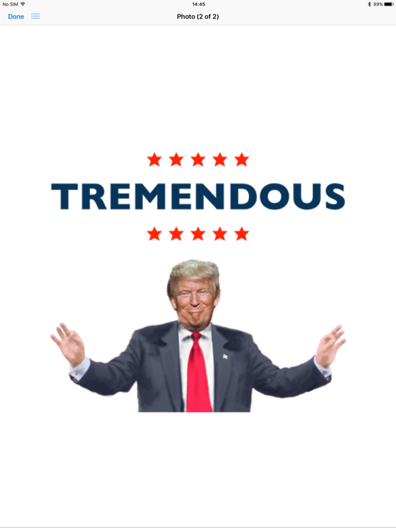 FULLY ANIMATED TRUMP STICKERS They move! Trump in motion! Love Trump, Loathe Trump. There's a sticker for everyone. Ravel in the wonder of Donald Trump! Express yourself with the words of Trump! Peel and place stickers on anything in your conversation - bubbles, images and even other stickers.