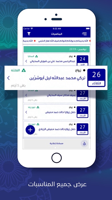 • أمكانية تفضيل اي مناسبة للرجوع له لاحقاً.