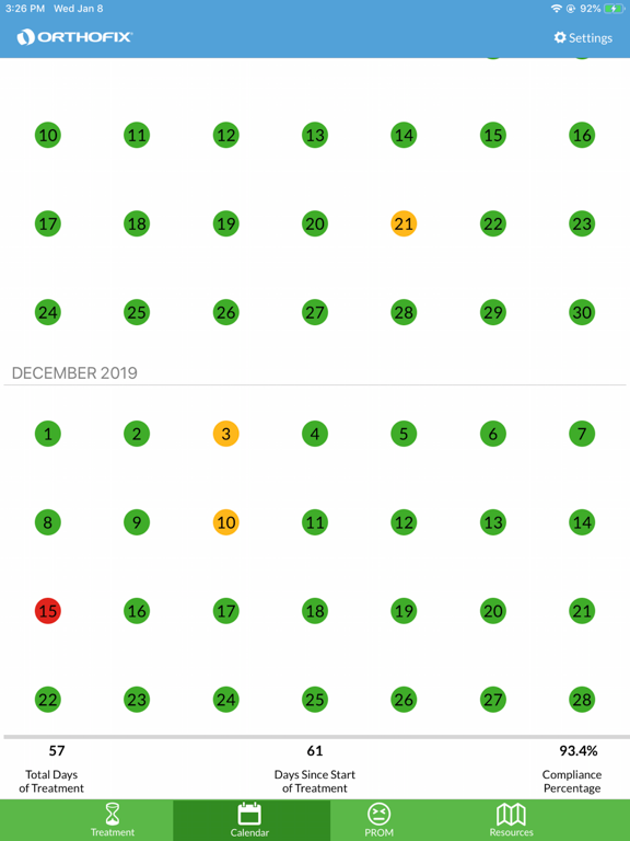 • Daily treatment calendar