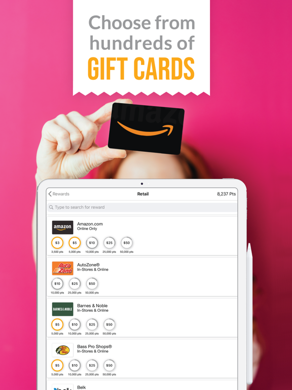 Fetch Rewards turns all your retail and restaurant receipts into savings. Simply scan any grocery, retail or restaurant receipt after you shop, and save on thousands of popular products throughout the store. Earn points on every receipt or eReceipt you scan. Turn receipts into gift cards for online retailers, e.g. Amazon, Target, and others. With our receipt scanner, there’s no more clipping coupons, chasing down expiring deals, or missing out on savings. Just shop, scan, and save. It’s that easy.