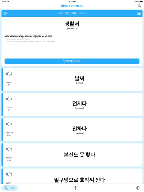 Vocabulary - Korean Mongolian dictionary app containing around 50 thousand words of beginner, intermediate, advanced levels
