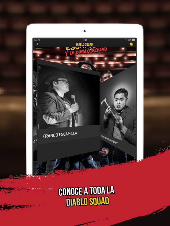 En esta App podrás interactuar y ver en vivo a Franco Escamilla antes de sus funciones y podrás ver y conocer a la "Diablo Squad. Encontrarás material exclusivo y promociones que no encontrarás en otro lugar. Comprar boletos para sus funciones y visitar sus redes sociales. Ver e interactuar con "La mesa reñoña" y divertirte como siempre lo haces con las ocurrencias de "El Diablo"