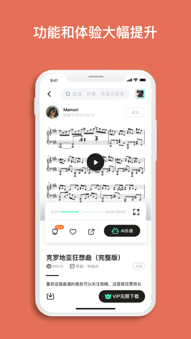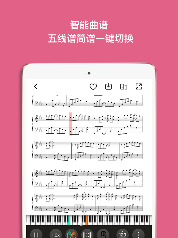 在这里,可以下载并分享高清优质五线谱、畅听稀缺的钢琴曲集,还有更多好玩实用的功能等你来发现。