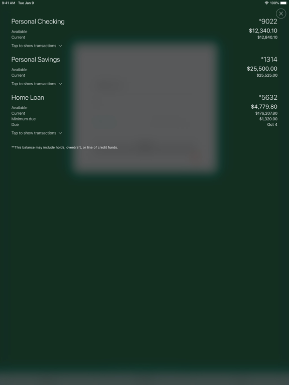 • Review account balances and transactions