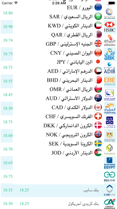 يعرض البرنامج الأسعار للبنوك التالية :-