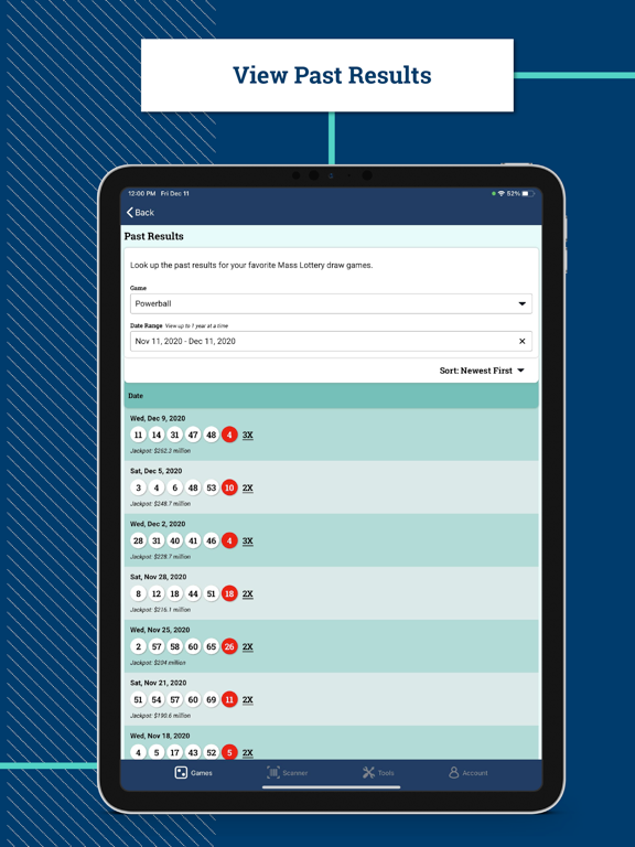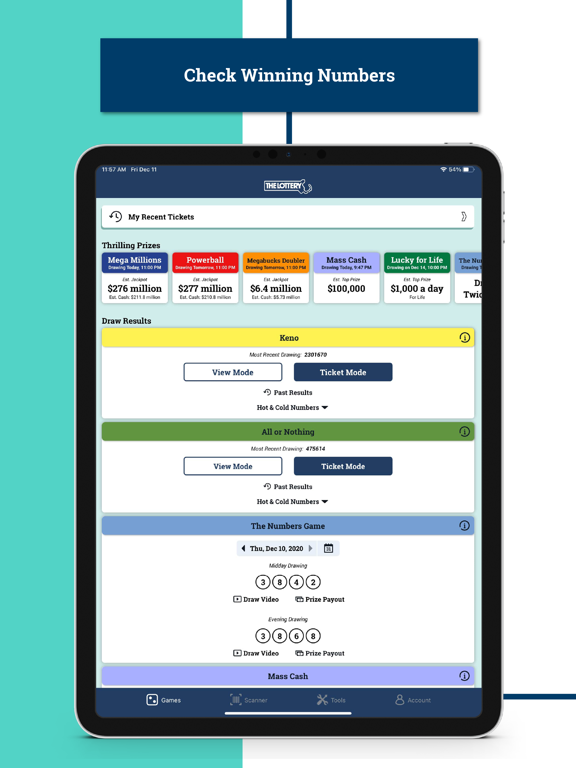 Download the Official Massachusetts Lottery App and get into the game! Register for a Mass Lottery Player Account and start scanning tickets to see if you’ve won. View game results and jackpots for all of your favorite games. You can watch Keno and All or Nothing in View Mode for a simple drawing replay, or use Ticket Mode to get a personalized game experience that automatically calculates your winnings. Find a retailer near you quickly and easily using search, interactive map, and filtering options. Must be 18 years or older to play.