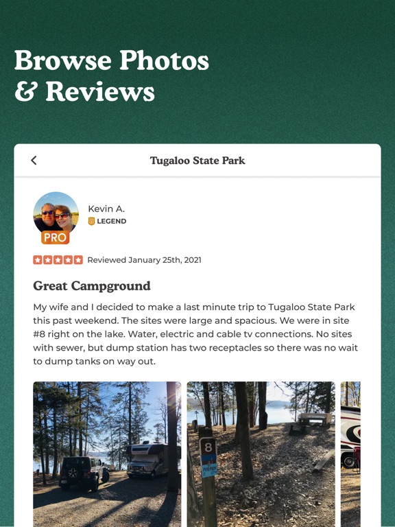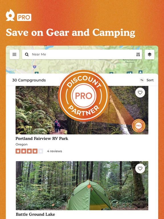 * PRO Discounts — Up to 40% off 1000s of campgrounds and brands.