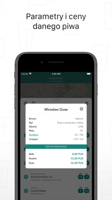 Do każdej pozycji na kranie dołączone są podstawowe parametry piwa tj. styl, browar, zawartość alkoholu, IBU i inne.